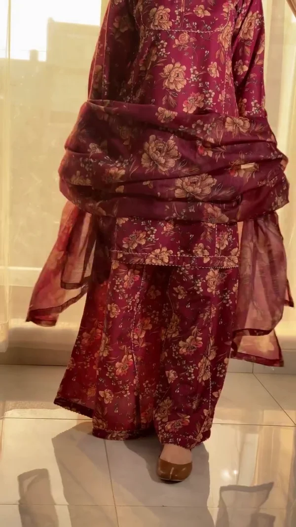 Women’s Cotton Blend Straight Floral Print Kurta with Palazzo & Dupatta