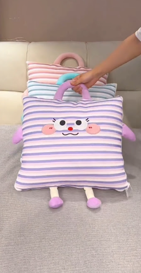 Be the first to review “Cute Striped Plush Pillow Bag with Smiley Face & Handle”