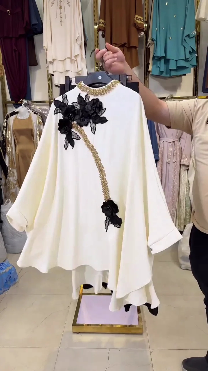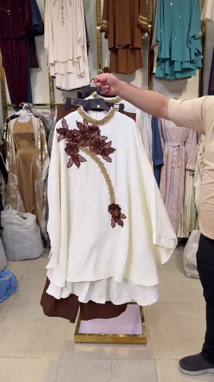 This stunning outfit is designed to give a rich and elegant look, perfect for special occasions and festive moments. The top features a graceful layered design that adds volume and style while keeping the overall appearance soft and flowing. The beautiful floral embroidery on the front creates a luxurious feel, making the outfit stand out without looking too heavy. The detailed work around the neckline and the artistic pattern across the front give the dress a premium and stylish finish. The layered structure gives the outfit a unique shape that looks graceful while also feeling comfortable to wear. The loose and flowy fit allows easy movement, making it suitable for long events, parties, and celebrations. The matching bottom completes the look with a balanced and neat appearance, giving the outfit a perfect combination of tradition and modern fashion.