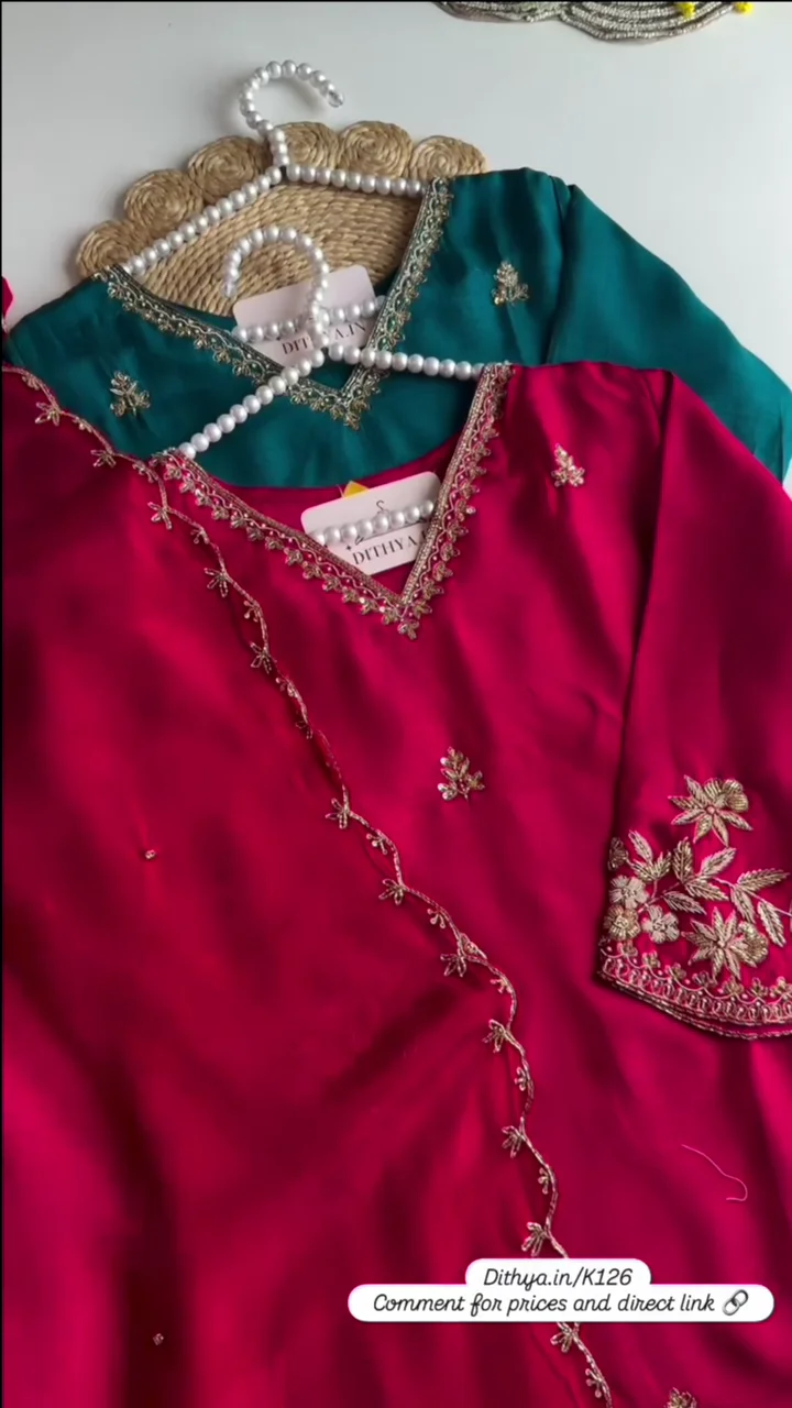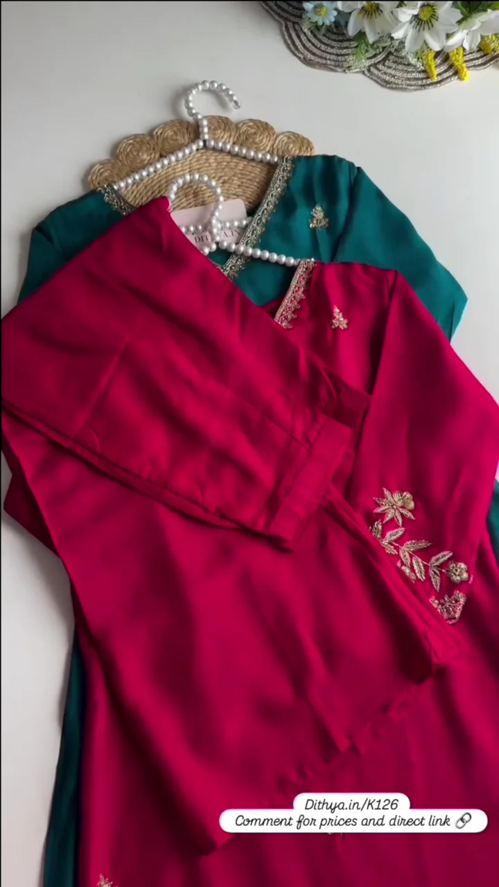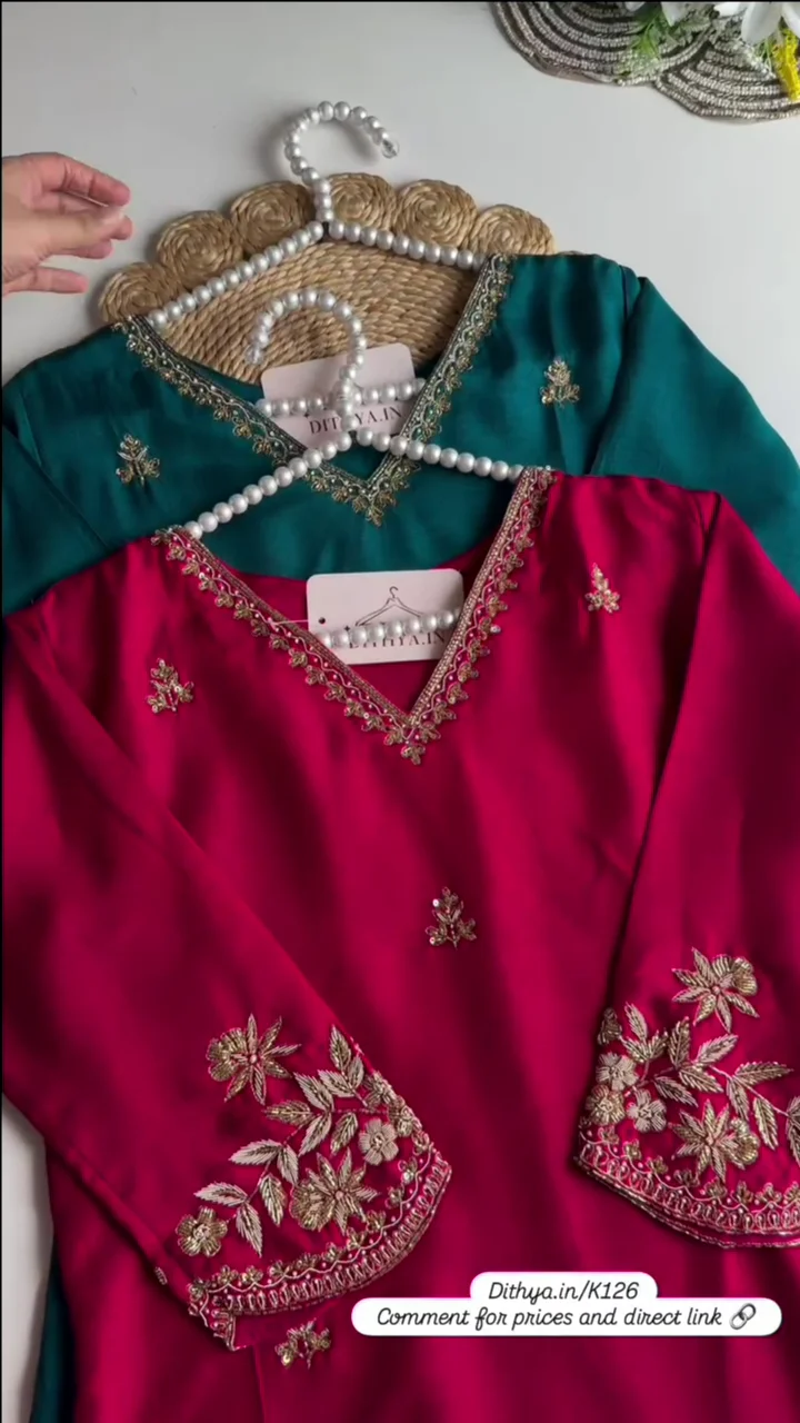 import placeholder for 9483Floral Yoke Design Beads Work Pure Silk Kurta With Pyjama